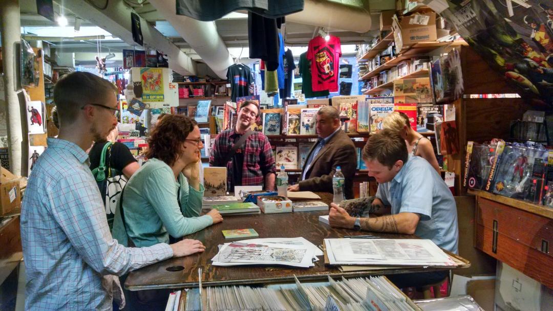 Local comics creator JAY KENNEDY (GRITTY and DISTRACULA) on Saturday, 9/27/14 from noon-4pm. Jay’s new comic 2:03AM just arrived and is available (along with his other publications) at the shop now.