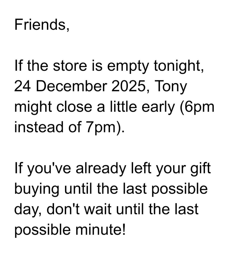 WE WILL BE CLOSED ON THURSDAY, 25 DECEMBER 2025.